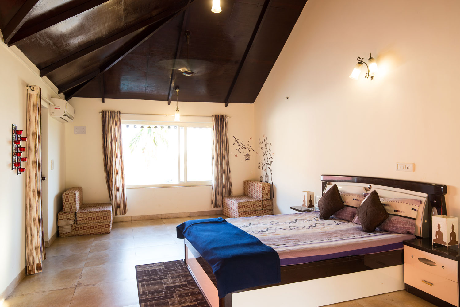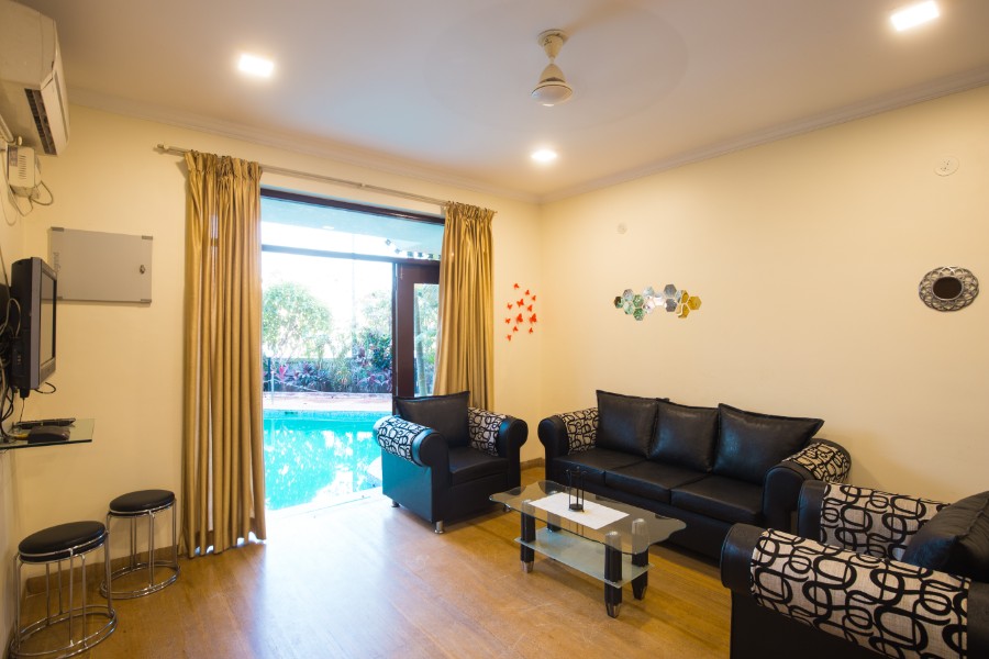 This is a spacious 8000 sq ft. 6 bhk bungalow ideal for large groups. 4 bedrooms with attached bathrooms are situated on the 1st floor. 2 bedroom with spacious bathrooms as well as 3 balconies are situated on the 2nd floor. 2 powder rooms are attached to the Living Room.
