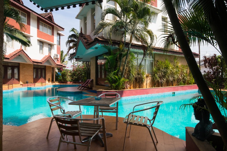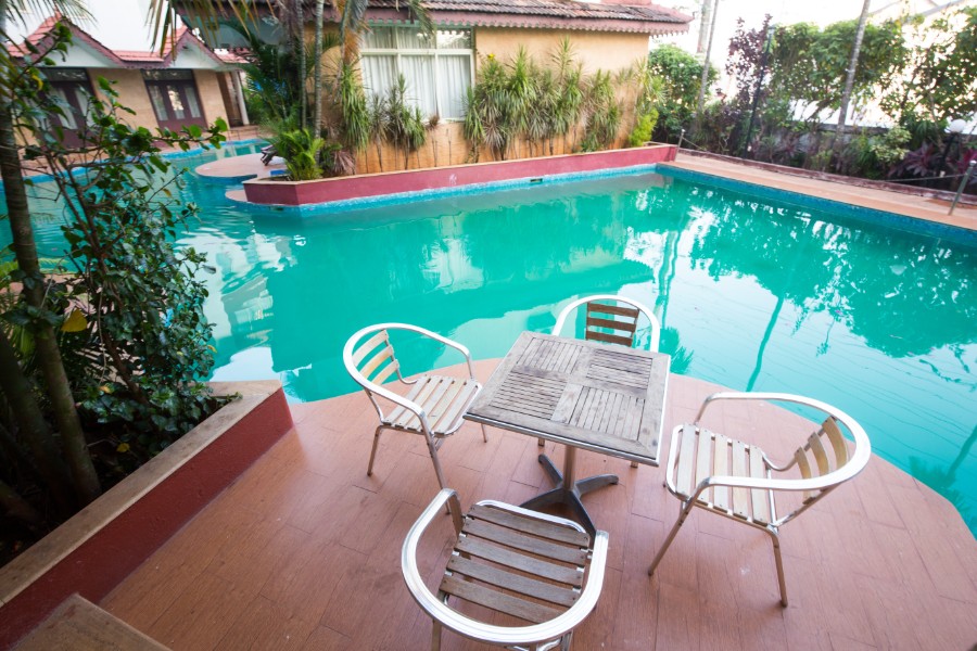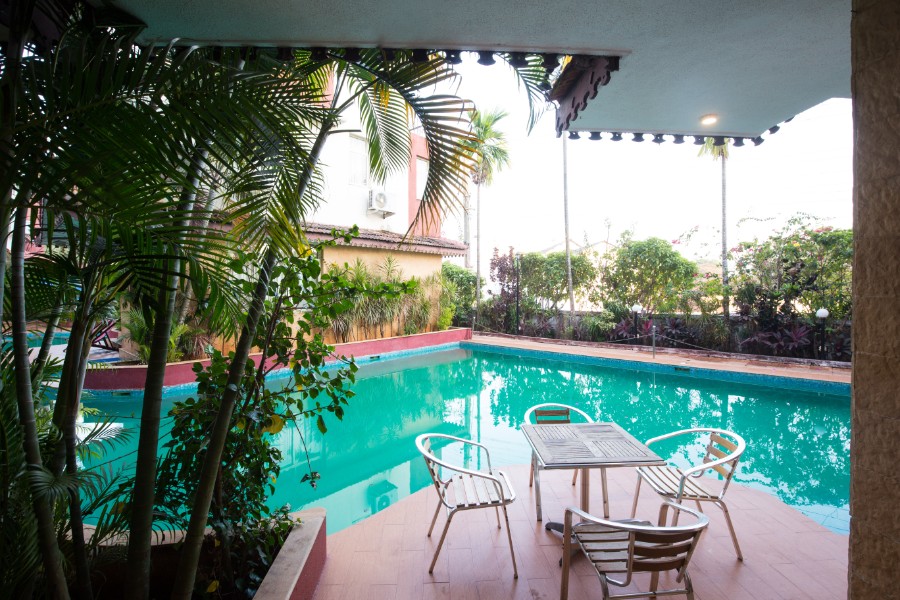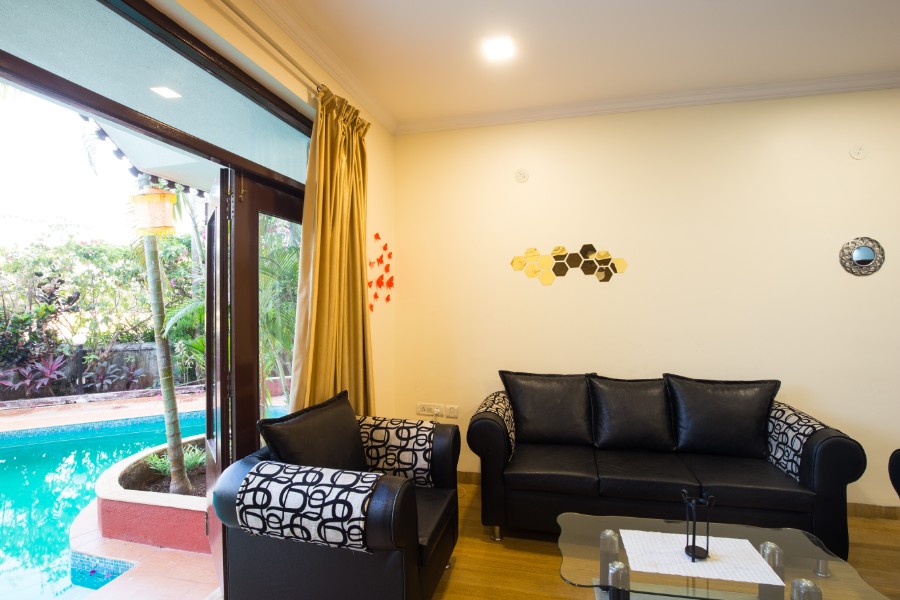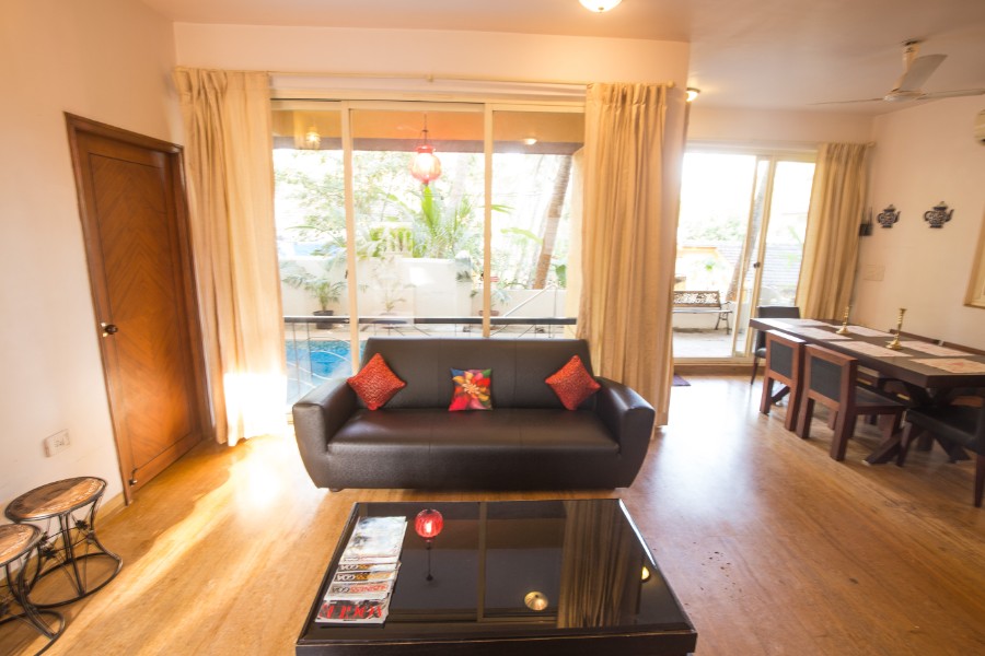 An exquisite common pool runs through the entire complex and the steps of the living room leads into the pool.